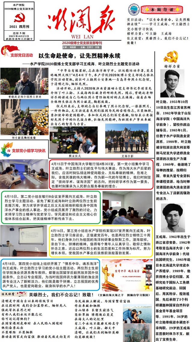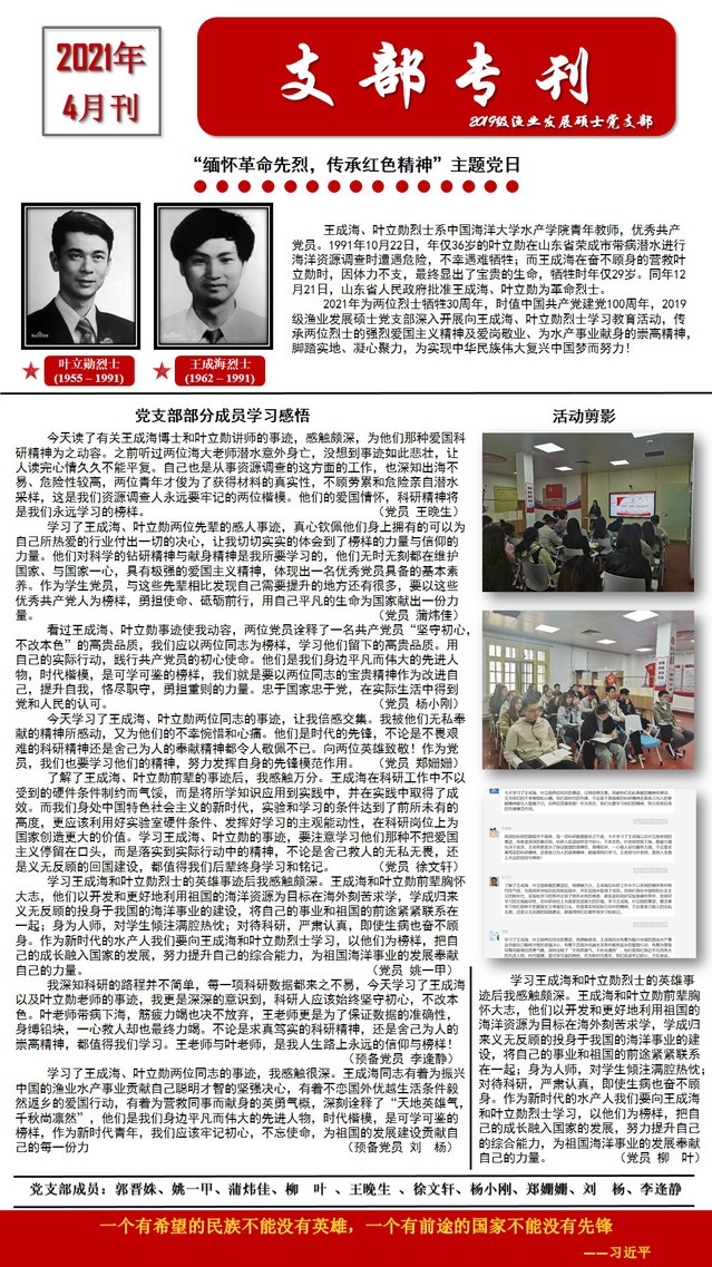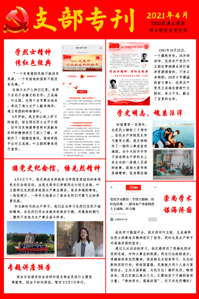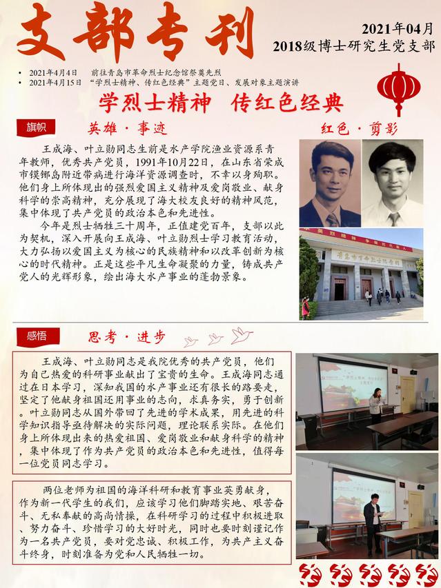 黑料网 党史学习教育之“学烈士精神、传红色经典”支部专刊