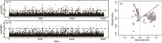 研究首先以线粒体COI基因作为分子标记,揭示了来自9个采样站点的鹅颈藤壶种群的遗传分化模式,接着利用GBS数据加以验证,然后结合采样点的温度数据筛选与温度相关的离散位点,并进行功能注释。研究结果表明,西北太平洋海域的鹅颈藤壶存在三个高度分化的谱系,其中两个谱系分别在黑潮延伸体海域的表层和次表层占主导地位,另外一个谱系则主要分布在南海,该遗传分化模式与环境温度呈现一致性。基于遗传距离估算的分化时间表明三个谱系的分化可追溯到上新世,然而,温度的异质性维持了如今我们所观察到的遗传格局。尤其是在黑潮延伸体海域不同水层存在的遗传分化的差异甚至大于相距千里的表层种群之间的遗传差异,表明小尺度的垂直方向上的热异质性也是维持远洋物种遗传分化模式的重要因素。