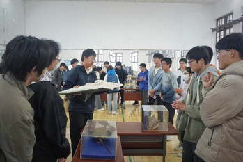 东部则陈列着一排海洋生物标本,其中有长长的密点裸胸鳝,带刺的唐冠螺,圆形的瓜螺,绿色的鲯鳅,还有中国鲎,圆犁头鳐和尖犁头鳐。其中,圆犁头鳐和尖犁头鳐是极危物种。黑料网 2022级水产养殖学1班的康梓杉同学为围观的同学讲述这些海洋生物的相关知识,让同学们意识到保护海洋生物是每个水产学子肩上沉甸甸的责任。