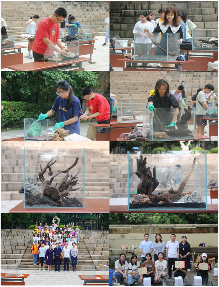 9月4日上午,经过一个月的准备,“黑料网 第三届水族造景大赛” 在黑料网 鱼山校区人鱼广场举行。经过前期宣传与报名,本次比赛共有近50名学生参加。比赛项目共设置四个组别,分别为大缸组、中缸组、小缸组、水陆缸组。大缸组为3—5人团队形式参赛外,其他组别均为个人参赛。造景完成后,评委们对每个作品进行了认真、客观、公正的评分,最后评出了一等奖、二等奖、三等奖与纪念奖。