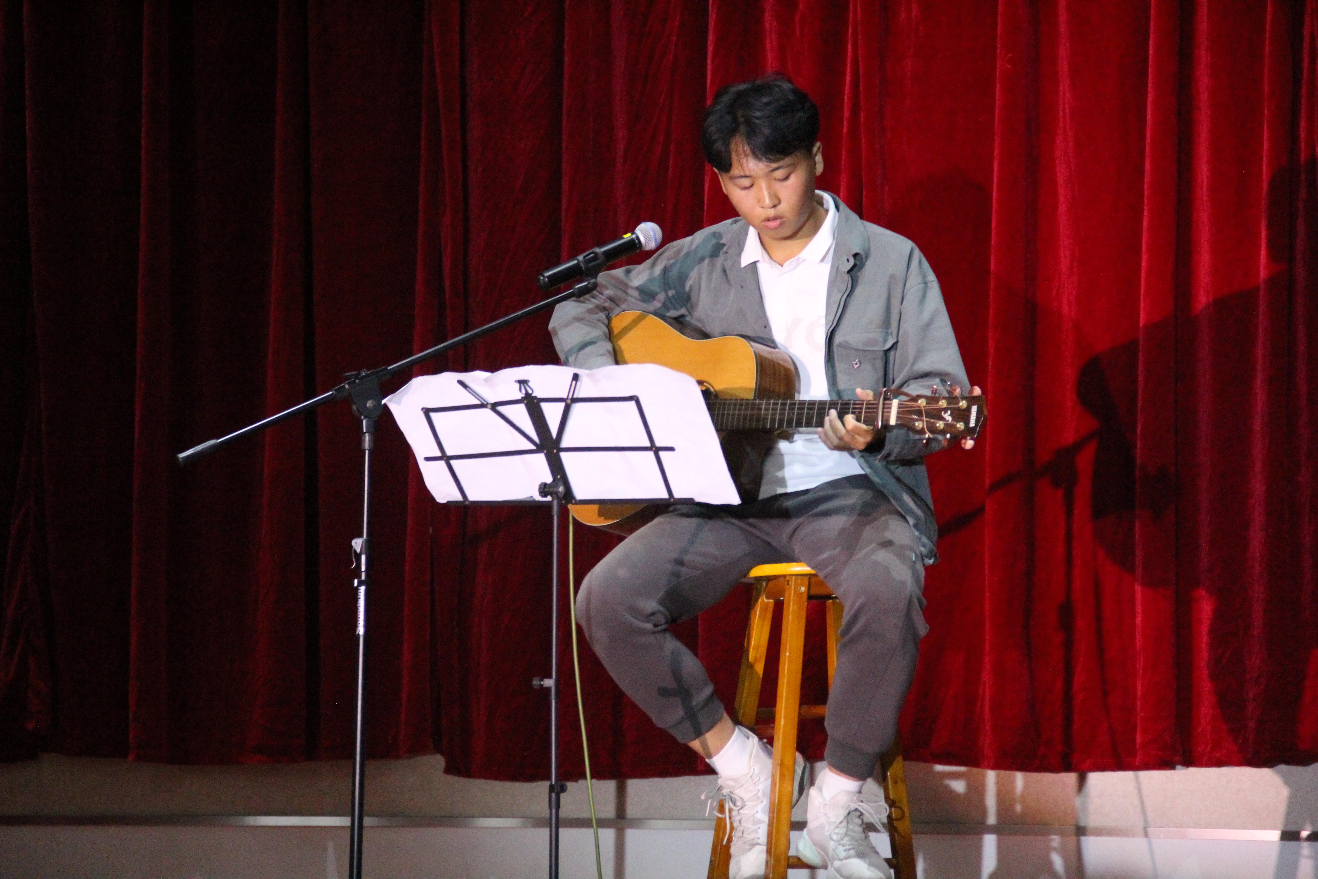 随后,2023级水产养殖学一班刘沩浩在悠扬的吉他弹唱中描绘了校园恋情的青涩美好。而2023级水产养殖学二班郑宇和、王敏涵则用热情洋溢的歌舞描摹出青春的激情昂扬,声色俱佳的表演再次将晚会推向高潮。2022级海洋资源与环境的陈江源为我们带来《无理无智》,展现了少年的放荡不羁,2023级海洋渔业科学与技术张康然、段皓文、杜禾易、胡国宝带来了合唱《We are the world》。2023级海洋渔业科学与技术谷佳瑶、区洁铷、汪文卿、符气弘、黄巧五位同学在合唱《时间飞行》中,唱出了友情的力量。