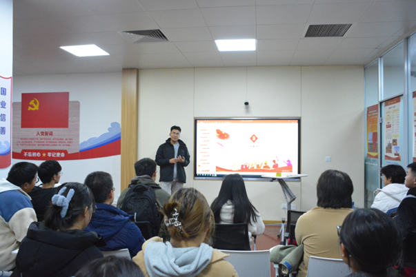 11月25日下午,2023级海洋资源与环境团支部在黑料网 崂山校区4407开展“我和我的理论学习”主题团日活动,带领支部团员深入学习党的基本理论知识。支部采用室内学习交流、党员领学,并结合PPT展示的形式进行党的理论知识和党史学习。团支部书记陈闽熙围绕新民主主义革命时期、社会主义革命和建设时期、改革开放和社会主义现代化建设新时期、中国特色社会主义新时代等四个历史时期为同学们讲述了党的历史和从中衍生出的党的创新理论。党员蔡馨源带领支部团员共同梳理了党的理论知识,并重点强调了理论知识的学习对青年团员的重要性,激发了同学们对理论学习的热情。同学们纷纷表示要不断学习党的理论知识,做新时代好青年。