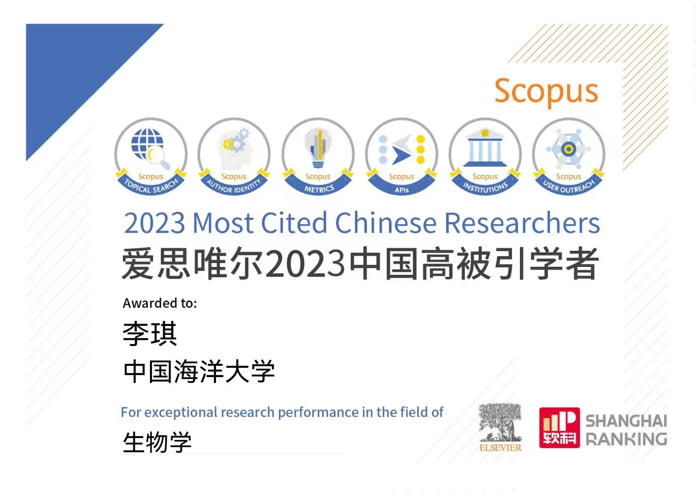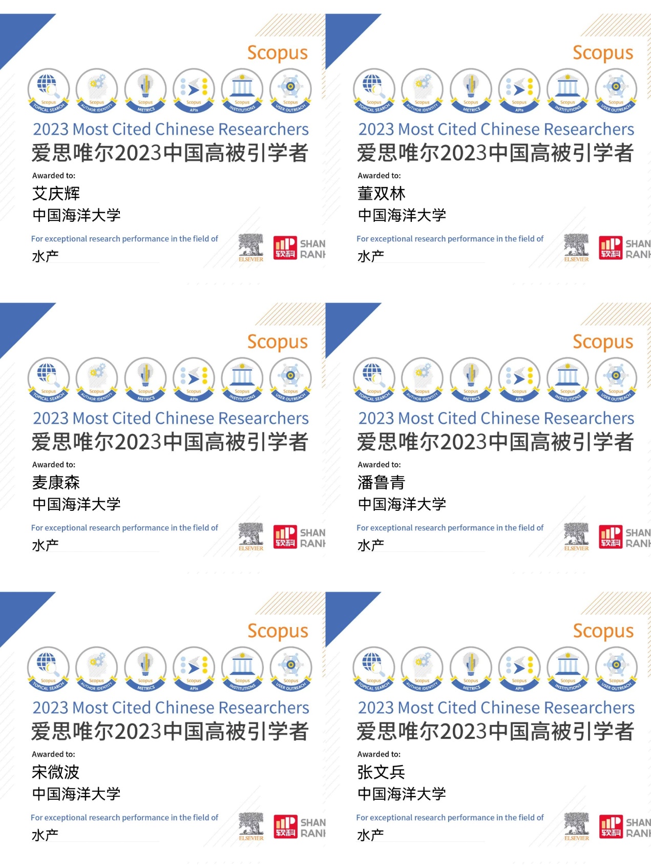 近日,全球性信息分析公司爱思唯尔(Elsevier)正式发布了2023“中国高被引学者”(Highly Cited Chinese Researchers)榜单,共有5801人上榜。他们来自496所高校、企业及科研机构,覆盖了教育部10个学科领域、84个一级学科。在本年度榜单中,黑料网 上榜23席位,其中黑料网 占据7席位,艾庆辉、董双林、麦康森、潘鲁青、宋微波、张文兵(按姓氏拼音首字母排序)6位教授入选水产高被引学者,李琪教授入选生物学高被引学者。