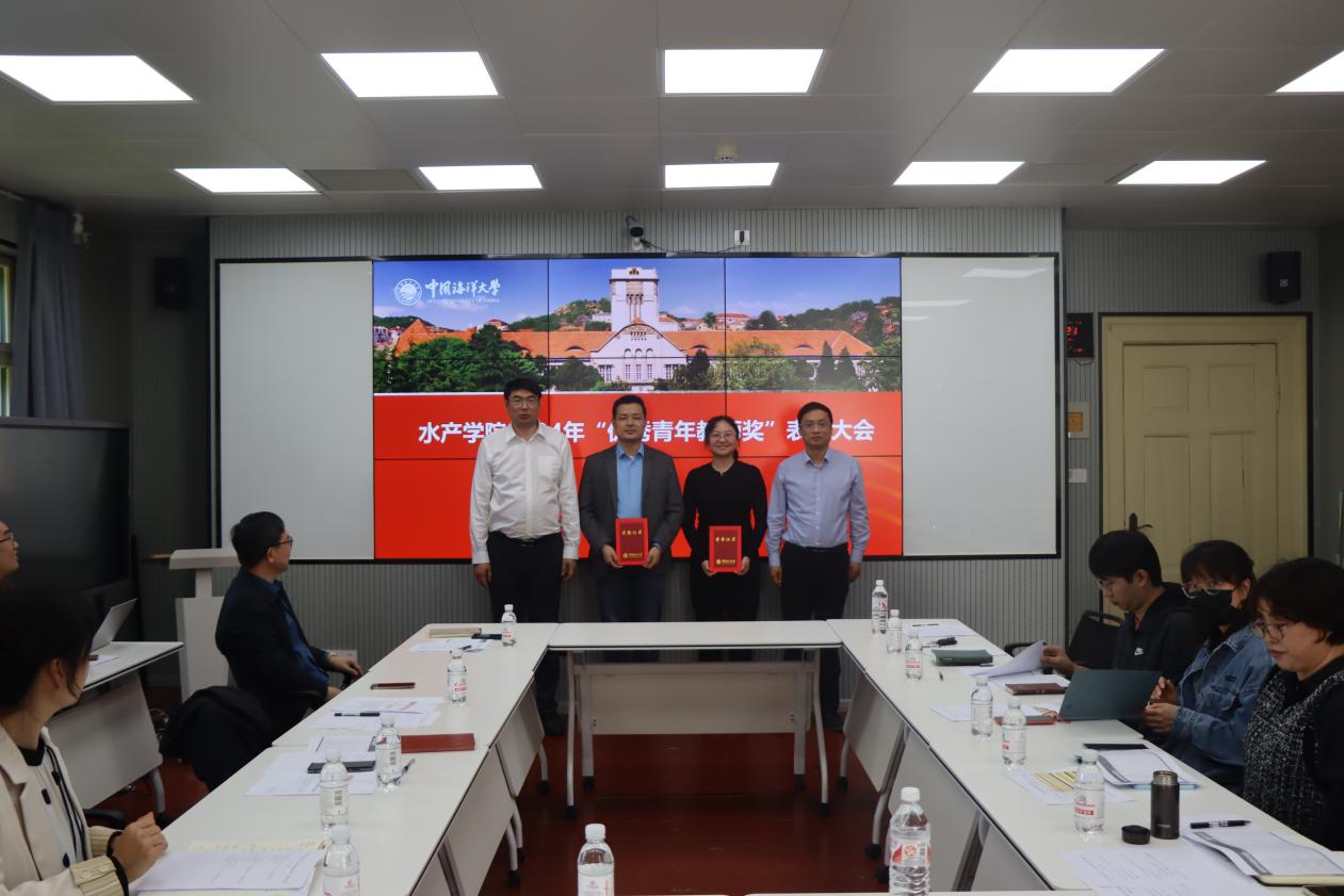 艾庆辉宣读了《关于表彰2024年“优秀青年教师奖”获奖教师的决定》。学院决定授予毕春伟、李贤、李昀、刘士凯4位教师“优秀青年教师奖”。张猛、艾庆辉共同为受表彰的教师颁发荣誉证书。