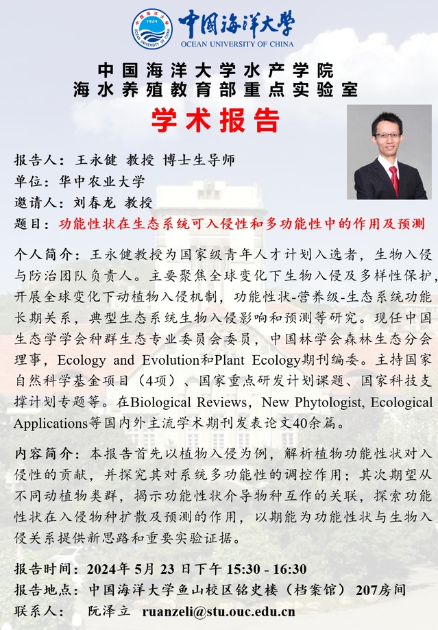 【学术报告】功能性状在生态系统可入侵性和多功能性中的作用及预测