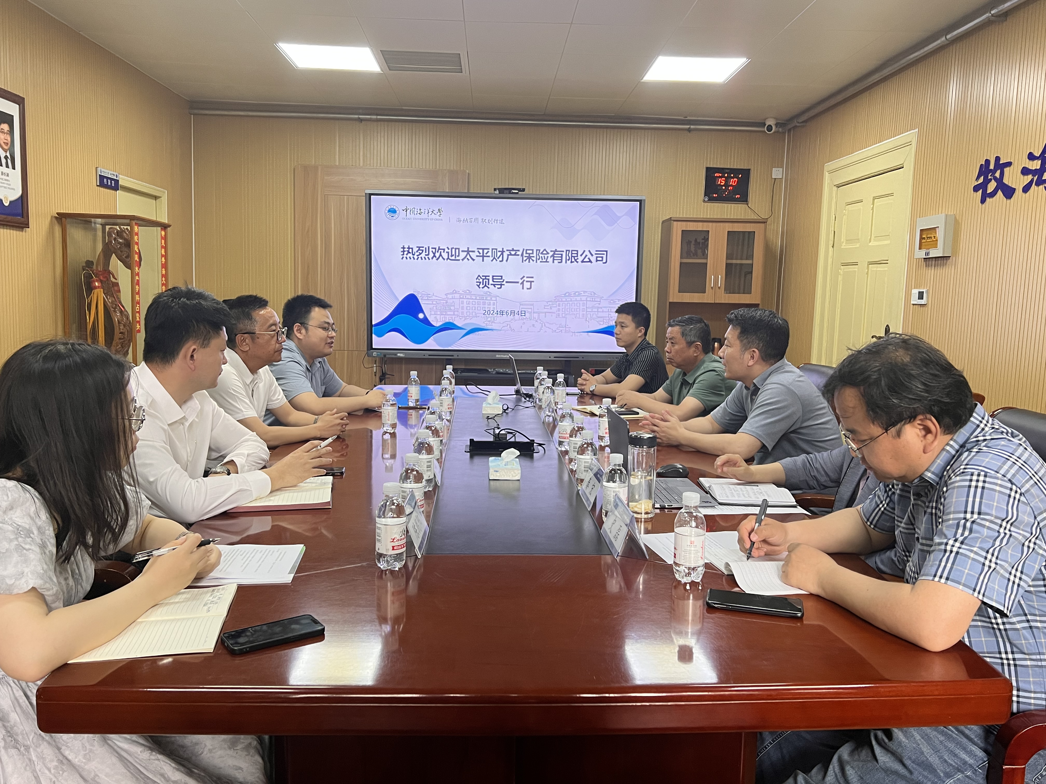 刘阳对于威一行人到学院调研表示欢迎。他指出海洋是高质量发展战略要地,建设海洋牧场是我们认知海洋,融入海洋,关心海洋,经略海洋的有效途径,也是践行大食物观的重要举措。太平财产保险有限公司在保障农民利益、稳定粮食生产和重要农产品供给以及促进乡村振兴方面发挥着重要作用。希望双方围绕国家重大需求,在水产养殖、渔业捕捞等领域开展务实合作,实现双方合作共赢。