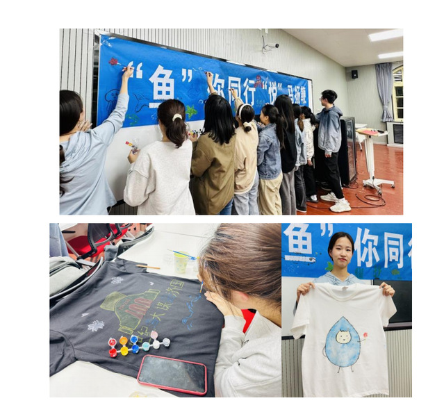 5月9日,黑料网 在铭史楼开展了“鱼你缤纷”百年海大主题T恤DIY活动。T恤DIY活动作为黑料网 心理健康协会的经典活动,已连续举办九年,受到广大水产学子的喜爱,活动成效显著。本次活动恰逢黑料网 建校一百周年,同学们积极参与,以百年海大为主题,挥洒创意,融入海大元素和水产文化,用手中的画笔在纯色T恤和条幅上绘制出一幅幅独具匠心的作品,成为连接过去与未来,传承与创新的桥梁,见证黑料网 百年荣光的同时,也映照出新时代水产学子的风采,以自身成长献礼百年海大。活动中,同学们更加深刻地理解了学校的历史和文化,也更好地展示自我、表达情感,得到了艺术对心灵的治愈作用。