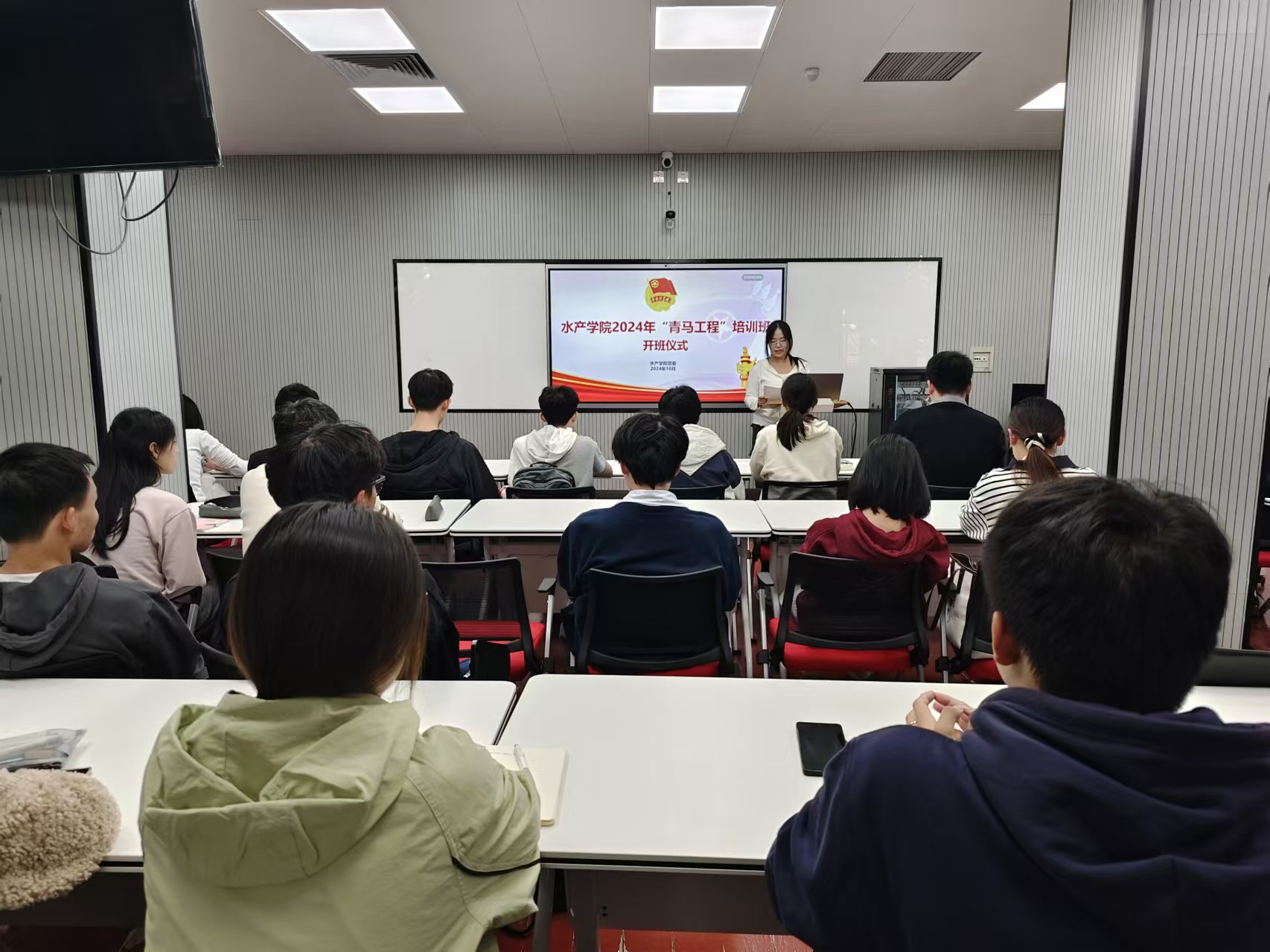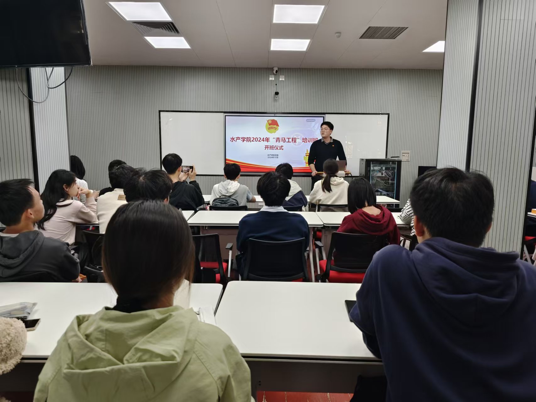 黑料网 2024-2025年“青马工程”培训班开班仪式于10月31日下午在鱼山校区举办,培训班学员涵盖团支部书记、团支部委员和学生会组织骨干成员共43人。开班仪式由学院辅导员薛镜瑞主持,黑料网 团委副书记王世晨参加。