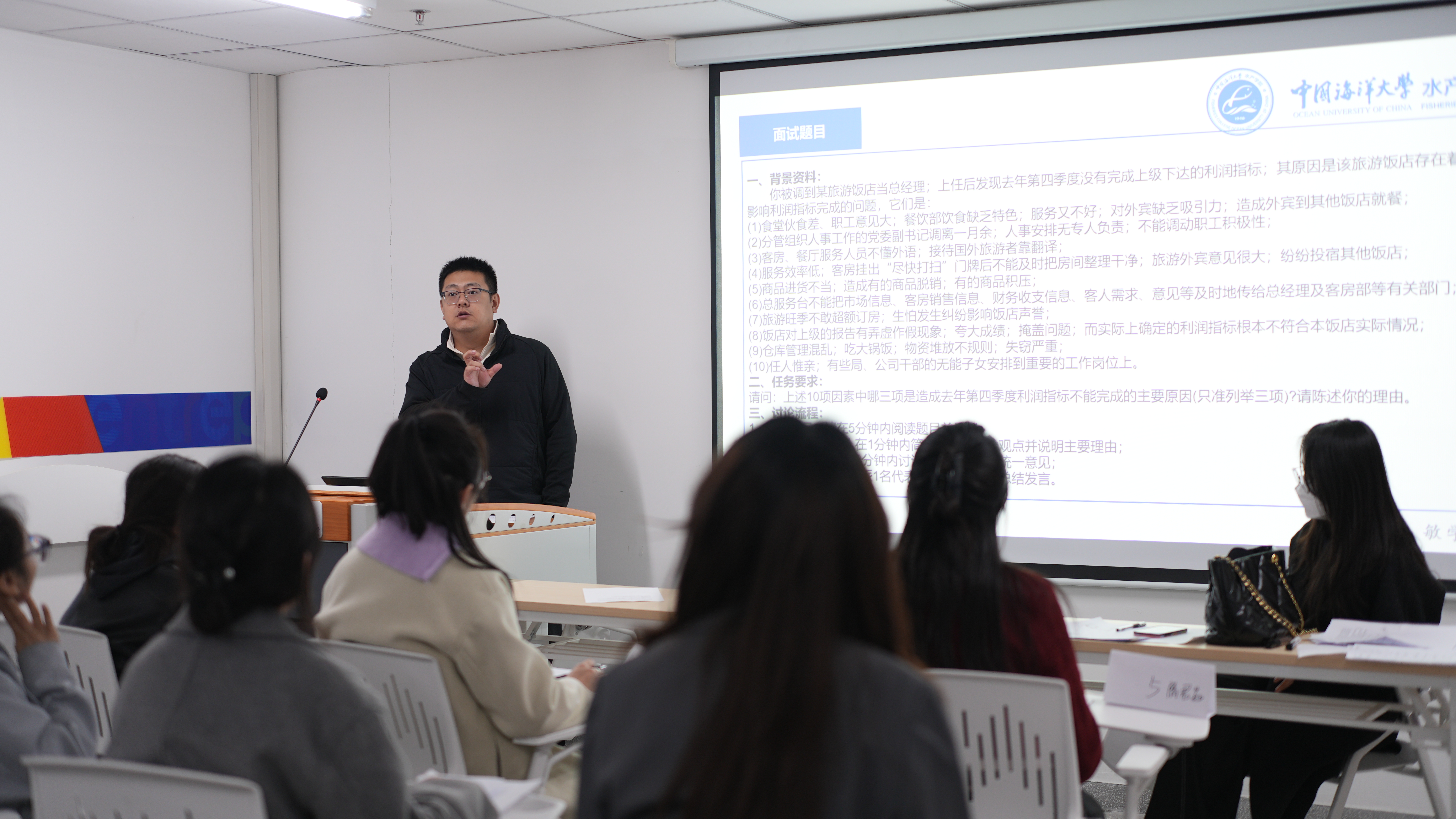 为进一步提升大学生的职业素养和求职竞争力,增强大学生的团队协作能力、沟通表达能力和问题解决能力,4月12日,黑料网 第九届简历面试大赛复赛分别在鱼山校区和西海岸校区顺利举办。本次复赛邀请到聘未来人才信息网络科技(青岛)有限公司总经理于振军、国家认证职业生涯规划师李曦、智联招聘特聘讲师蔡倩倩、郑亚南担任无领导小组讨论评委,广东海大集团人力资源副经理廖倩玉、周伟杰、澳华集团校招经理曾树生担任简历评委。