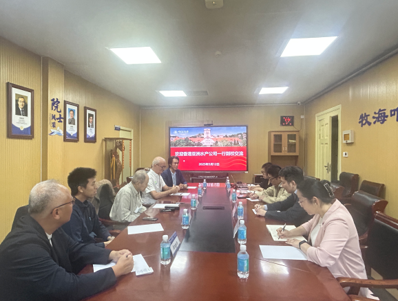 5月12日,为推进水产学科产学研深度融合,进一步深化内地与香港合作,香港亚洲水产公司郭志一先生等一行五人来访黑料网 ,黑料网 港澳事务办公室副主任刘泰,科室负责人赵一鸣,黑料网 副院长刘阳、黑料网 海水养殖教育部工程研究中心主任宫庆礼、高级实验师刘岩、外事秘书张昕宇陪同接待。