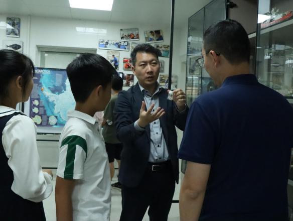 在鱼山校区逸夫科技馆、南极标本馆、敏行馆的参观环节,青少年们近距离观察了丰富的海洋生物标本、极地科考成果及水产养殖设备。南极标本馆的珍稀鱼类标本、逸夫科技馆的海洋牧场模型等展品,让学生们直观感受到海洋科学的广博与深远。