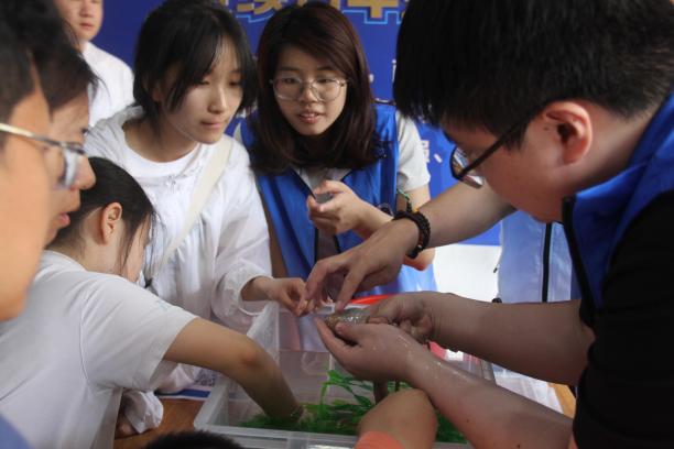 开幕式后,五场精彩的科普讲座依次展开。李建超副教授以《你好,南极鱼类》为题,带领听众走进神秘的南极海域;侯志帅教授在《鱼类性格与行为研究探秘》中,生动解析了鱼类的“个性”与生存智慧;王欣欣副教授通过《“海底建筑师”——人工鱼礁如何构筑海洋牧场生态家园》,展示了人类如何助力海洋生态修复;李惠茹副教授的《走近水生生态系统——PBL项目式学习》以实践案例启发青少年科学思维;胡志博士则在《生物的适应艺术:揭秘潮间带的多样性》中,揭示了潮间带生物的顽强生命力。授课同时,老师们与青少年听众积极互动,不时传出惊叹声、掌声和笑声。