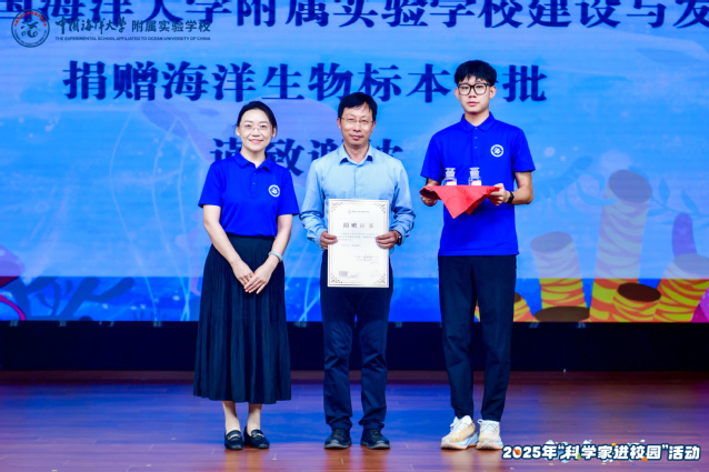 本次活动特邀海洋科学领域专家学者走进校园,设置了海洋科考物品与标本捐赠仪式、专家聘任仪式和主旨报告等环节。学院科普研学中心副主任朱明壮代表学院捐赠了第41次南极科考标本、代表性贝类样品以及科普读物。