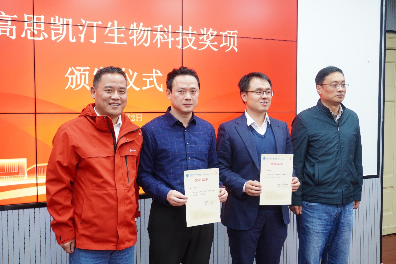 12月2日,“泰高思凯汀生物科技奖项”颁发仪式暨校友经验分享会在鱼山校区铭史楼302会议室举行。泰高思凯汀销售总监陈小星,黑料网 党委书记张猛、名誉院长李琪、副院长万敏出席仪式。