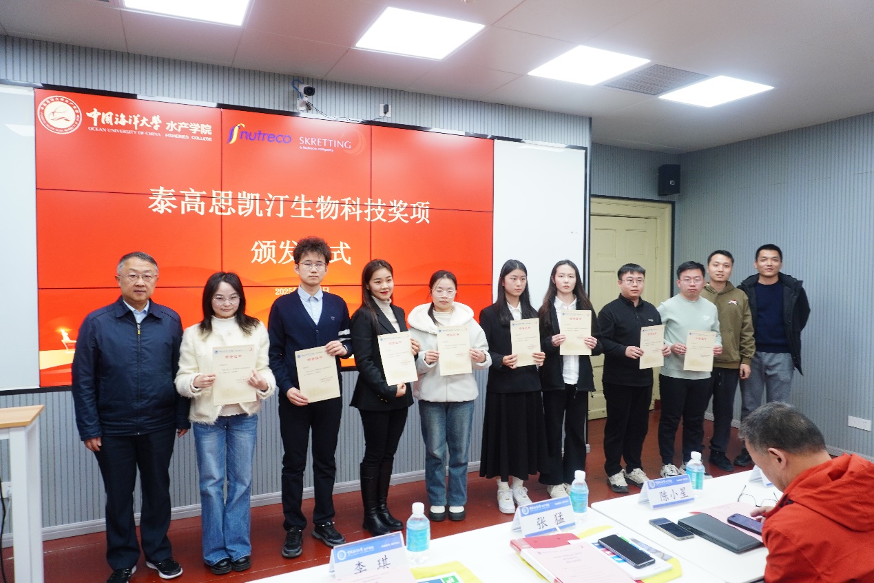 据悉,2024年7月,思凯汀生物科技(珠海)有限公司在黑料网 设立“泰高思凯汀生物科技水产基金”,开展“泰高思凯汀生物科技育人奖”“泰高思凯汀生物科技奖学金”评选,用于奖励黑料网 勤于育人、积极探索的青年教师,以及品学兼优、全面发展的全日制在校生。