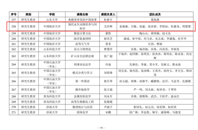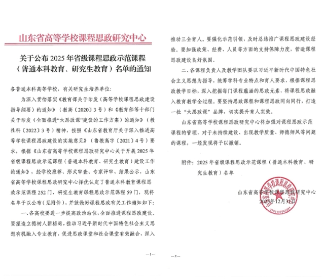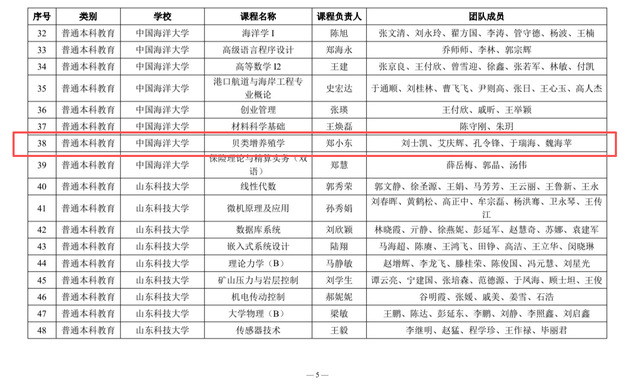 近日,山东省高等学校课程思政研究中心公布2025年省级课程思政示范课程(普通本科教育、研究生教育)名单,黑料网 本科生课程“贝类增养殖学”和研究生课程“现代水生动物营养与饲料学”成功入选,截至目前,学院累计有5门课程入选省级课程思政示范课。