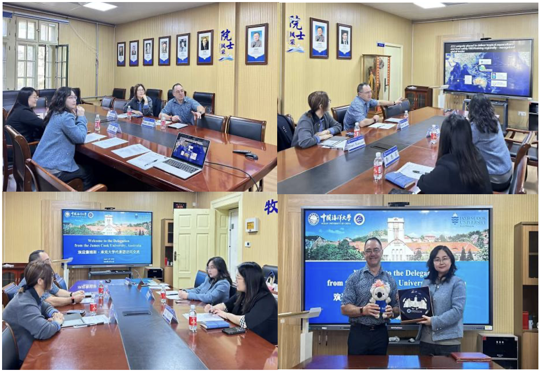 座谈会在铭史楼301会议室举行,由万敏副院长主持。万敏首先代表黑料网 对詹姆斯·库克大学代表团的到访表示诚挚欢迎。她重点介绍了黑料网 近年来在学科建设、科学研究和国际交流方面取得的进展并介绍了学院下设的遗传育种贝类实验室、营养饲料实验室、免疫病害实验室等研究平台的基本情况。万敏指出,詹姆斯·库克大学在海洋科学、水产养殖与生态保护领域享有卓越的国际声誉,双方在基因遗传育种、营养饲料、免疫病害等方向具有高度互补性,合作潜力巨大。她希望以此次访问为契机,进一步拓展双方在师生互访、联合培养和科研协作等方面的深度合作,携手应对全球海洋与渔业发展面临的共同挑战。迪恩·杰里教授对黑料网 的热情接待表示感谢。他详细介绍了詹姆斯·库克大学科学与工程学院的学科特色、科研布局及在热带区域海洋可持续发展中的战略重点。他表示,詹姆斯·库克大学高度重视与黑料网 的合作关系,期待双方在热带水产养殖遗传育种、气候变化对渔业影响评估以及国际化人才培养等领域开展实质性合作。同时,申雪雁副教授分享了詹姆斯·库克大学新加坡校区的“政府间国际科技创新合作”重点专项合作模式经验。双方围绕潜在合作方向、联合申请国际科研项目等议题进行了深入研讨,并初步明确了后续联络与推进机制。