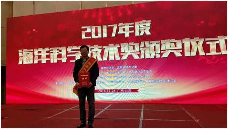 2018年11月20日,第九届海洋强国战略论坛暨海洋科学技术颁奖仪式在广西北海举行。会议对获得2017年度海洋科学技术奖的项目颁发奖励证书,表彰在海洋科学技术创新活动中做出突出贡献的集体和个人。