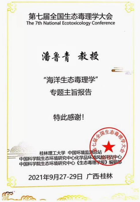 2021928日,第七届全国生态毒理学大会在广西桂林隆重开幕。本次大会由桂林理工大学、中国科学院生态环境研究中心化学品环境风险评估中心、中国环境监测总站、中国科学院生态环境研究中心《生态毒理学报》编辑部联合主办。研究室潘鲁青教授受邀参加了此次大会。