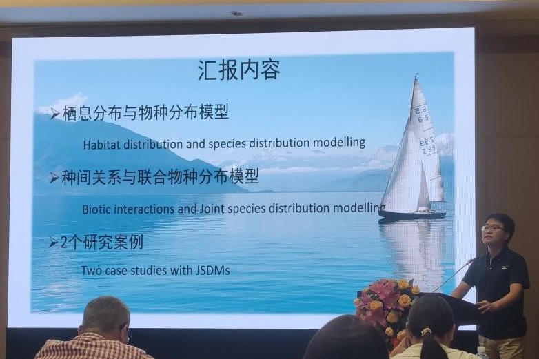 会议上,张崇良老师做了题为《影响栖息分布的生物与非生物因素:联合物种分布模型(JSDM)》的口头汇报。由浅入深地讲解了联合物种分布模型的研究与发展,并以最新研究成果为例,介绍了联合物种分布模型在渔业资源评估和生物多样性预测方面的应用。汇报内容可为气候变化下生物多样性的预测提供理论指导。