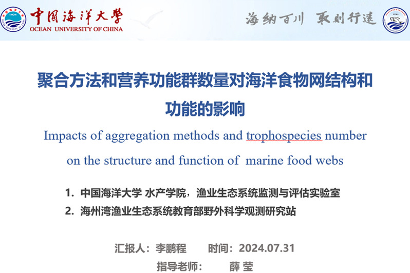 李鹏程进行《聚合方法和营养功能群数量对海洋食物网结构和功能的影响》的汇报