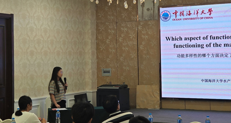 万勇慧进行《功能多样性的哪个方面决定了被开发的海洋底层鱼类群落中的生产功能?》的汇报