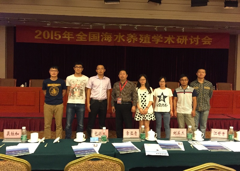 5、2015年全国海水养殖学术研讨会 2015年11月15-17日,中国水产学会海水养殖分会在广州市召开。本次学术研讨会将围绕渔业资源与生态环境、浅海、池塘、滩涂、陆基工厂化及深水网箱等综合养殖技术、养殖模式、养殖环境与生态保护、遗传育种、病害防治、营养与饲料、海水养殖设施与养殖工程、水产品质量安全与标准化以及海水养殖发展战略等相关领域进行研讨与交流。本实验室温海深教授,2位博士研究生,5位硕士研究生出席会议,温海深教授和司玉凤博士研究生分别做了大会报告。 ①温海深。试论我国花鲈养殖产业发展与种子工程 ②司玉凤。不同盐度条件下半滑舌鳎肝脏转录组学特性的初步研究