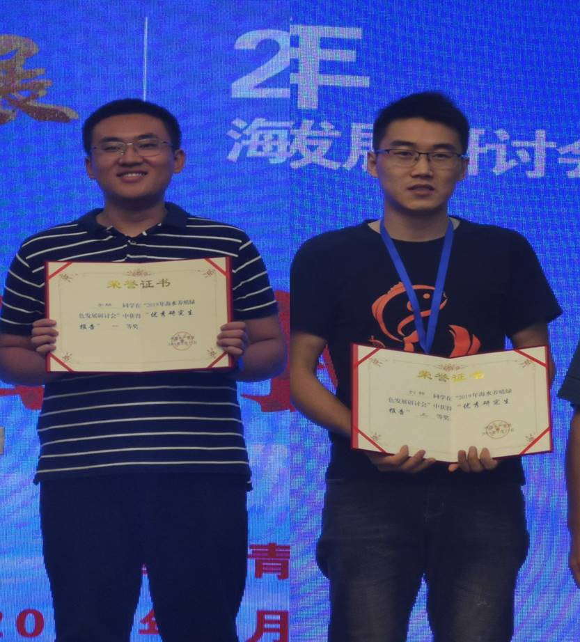2019年9月26~27日,于青岛隆重召开了2019“丝路国家水产养殖国际论坛”“2019年海水养殖绿色发展研讨会”,论坛由中国水产科学研究院主办,农业农村部国际合作司、渔业渔政管理局、亚太水产养殖中心网支持;研讨会由中国水产学会海水养殖分会、中国农村专业技术协会海水养殖专业委员会、青岛市水产学会主办,黄海水产研究所等承办。来自联合国粮食及农业组织、亚太水产养殖中心网等国际组织,澳大利亚、荷兰、印度尼西亚等国的代表,国内政府主管部门、科研院所、高校、行业协会、技术推广及水产龙头企业等代表400多人参会。 会议邀请了国内外知名学者、科研人员、企业负责人以及青年学子共同分享技术与经验,围绕水产绿色养殖模式、养殖生态环境调控、水产遗传育种、水产动物营养与饲料、养殖设施与工程装备、水产病害防治等方向,针对浅海增养殖、深远海养殖、池塘生态养殖等养殖模式进行了深入的探讨与交流。会议务实高效,内容生动丰富,使大家受益良多。 本实验室16名研究生和2名教师参加会议,其中何峰老师关于“牙鲆肌肉生长发育相关 lncRNAs 的鉴定与分析”、博士研究生刘阳关于“花鲈碱度耐受性状的遗传分子机制解析”与硕士研究生于朋关于“花鲈 AQP 基因家族的特征及其在淡水适应期间的鳃组织表达模式的研究”的精彩报告,分别获得了“优秀青年专家报告”、“优秀研究生报告三等奖”与“优秀研究生报告一等奖”的荣誉。