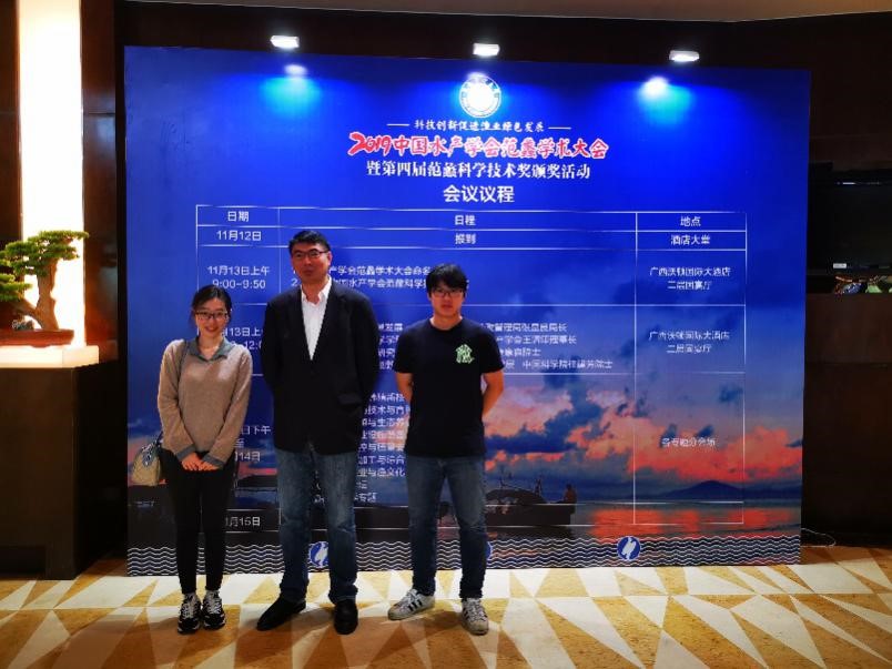 1113日,2019年中国水产学会范蠡学术大会暨第四届范蠡科学技术奖颁奖活动在南宁举行,大会学术交流采取“1+8”的形式,即1个主会场,8个专题分会场。主会场报告中,行业专家分别作题为《加快推进渔业高质量发展》、《2016-2019水产学学科发展研究报告》、《中国水产营养饲料研究进展与展望》、《遗传育种生物技术创新驱动水产养殖可持续绿色发展》主旨报告。专题分会场中,与会者分别就绿色水产养殖新技术、水产生物技术与育种、渔业资源与生态保护、现代渔业设施装备、疫病防控与质量安全、水产品加工与综合利用、休闲渔业与渔文化等内容开展学术交流。本实验室温海深、李昀、齐鑫参加会议。