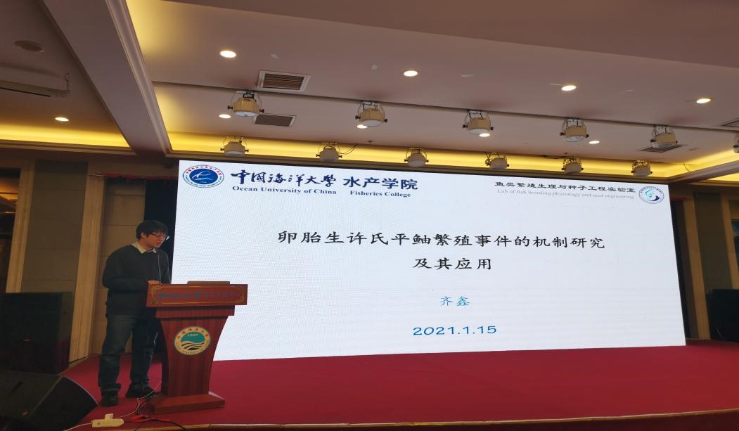 副校长李华军院士现场致辞,重点实验室主任麦康森院士做实验室年度工作报告。1月14日下午及15日全天,实验室举行学术年会。 15日下午,实验室李昀、齐鑫副教授分别做了题为“金乌鳢体色突变的遗传分子机制解析”和“卵胎生许氏平鲉繁殖事件的分子机制及其应用”的学术报告。李昀老师从遗传分子方面对金色乌鳢体色的决定因子进行了介绍;齐鑫老师对卵胎生许氏平鮋的繁殖机制进行了陈述。两位老师语言幽默又不失严谨,学术故事条理清晰,得到了与会专家的的一致好评。