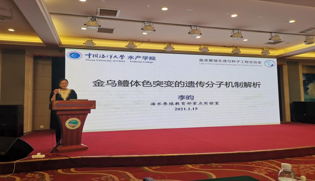 副校长李华军院士现场致辞,重点实验室主任麦康森院士做实验室年度工作报告。1月14日下午及15日全天,实验室举行学术年会。 15日下午,实验室李昀、齐鑫副教授分别做了题为“金乌鳢体色突变的遗传分子机制解析”和“卵胎生许氏平鲉繁殖事件的分子机制及其应用”的学术报告。李昀老师从遗传分子方面对金色乌鳢体色的决定因子进行了介绍;齐鑫老师对卵胎生许氏平鮋的繁殖机制进行了陈述。两位老师语言幽默又不失严谨,学术故事条理清晰,得到了与会专家的的一致好评。