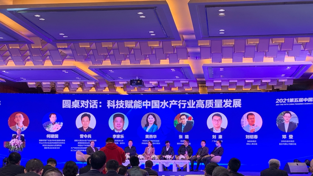 院长张春晓的主持下,中山大学水生经济动物研究所所长、国家虾蟹产业技术体系首席科学家何建国,国家大宗淡水鱼产业技术体系病毒防控岗位科学家、中国水产科学研究院水产病害防治重点研究领域首席科学家曾令兵,上海海洋大学党委常委、副校长李家乐,仲恺农业工程学院健康养殖创新研究院执行院长黄燕华,通威股份副总裁兼技术总监张璐,广西百洋集团总裁刘康,渔美康集团创始人兼总裁刘绍春以及深圳市澳华集团股份有限公司副总裁邓登一同参与圆桌对话,探讨科技赋能中国水产行业高质量发展。