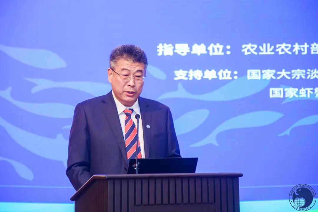 山东省农业农村厅郭鹏总农艺师为大会致辞,山东是水产养殖大省要进一步强化水产种业保护,加快建设水产种质资源分库和水产种质资源场,不断完善种质资源保护体系、增强保护能力。进一步强化水产育种创新,建设水产育种创新基地,完善育种科技创新体系,持续增强优良新品种的创新能力。进一步强化良种繁育推广,充分发挥水产良种生产基地作用,搭建技术服务网络,健全良种供应体系,不断提高良种繁育质量和良种覆盖率。进一步培树壮大龙头企业,强化政策支持和服务保障,积极引导龙头企业选育优势特色品种,加快构建商业化育种体系,不断提升水产种业竞争力,为全国水产种业振兴贡献山东力量。