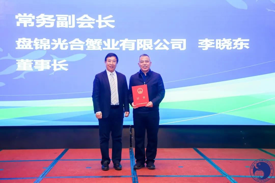 王剑敏副校长为分会常务副会长盘锦光合蟹业有限公司李晓东董事长颁发证书;