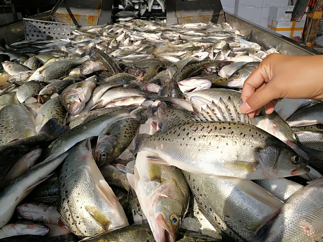 养殖中打样的海鲈