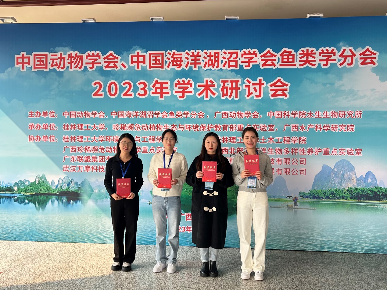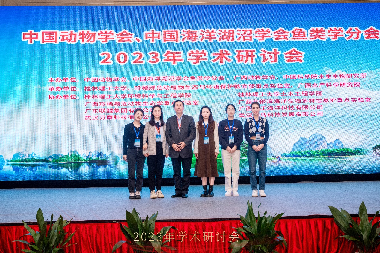 2023年12月29日至2024年1月1日,中国动物学会、中国海洋湖沼学会鱼类学分会2023年学术研讨会在广西省桂林市召开,会议由中国动物学会暨中国海洋湖沼学会鱼类学分会、广西动物学会等单位主办,桂林理工大学等单位承办。会议主题涵盖鱼类发育与遗传、鱼类分类及生态、鱼类生理、鱼类生物多样性等。大会主题报告:桂建芳院士以《鲫的遗传育种故事》为题,揭示了银鲫独特的生殖方式及其演化的遗传机制;刘少军院士以《鱼类良种良养良销》为题,倡导鱼类良种良养良销体系建立及应用;陈松林院士以《海水鱼类生物技术与种业:十年创新与发展》为题,探讨了海水鱼类的研究进展和发展前景。随后何舜平研究员、危起伟研究员、庄平研究员、徐鹏教授、高泽霞教授和吴志强教授也围绕主题进行了相关报告。本次大会展示了鱼类学研究的最新研究成果和重要进展,分享了科研经验,为青年学者的成长提供了高水平交流平台。本次会议参会人员500余名,包括国内鱼类学领军科学家、行业专家和研究生,本实验室由温海深教授带领研究生张静茹、杨晶、景潇和郭晴晴出席,并在青年研究生学术论坛中做大会报告,博士研究生张静茹、硕士研究生杨晶和硕士研究生景潇获得研究生论坛三等奖,硕士研究生郭晴晴获得研究生论坛优胜奖。