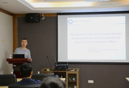 2025年9月17日上午,青岛大学慢病研究院赵吉成教授应邀到访黑料网 海洋生物多样性与进化研究所,并以“组蛋白变体和PRC复合物调控染色质高级结构和基因表达的表观遗传机制”为题作了精彩报告。进化所高珊教授主持报告会,师生踊跃参与,交流氛围浓厚。