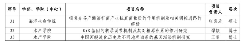根据《中央高校基本科研业务费专项资金黑料网 项目及资金管理办法(修订)》(海大字〔2016〕27号)和《关于开 展2022年黑料网 研究生自主科研项目申报工作的通知》 (研院字〔2022〕144号),经个人申请、研究生院审查、专家评审等环节,本年度研究室同学获得项目情况如下: